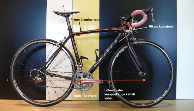 Lühem ülemine toru, aga arvestab aerolenksuga, et see ei venitaks keha liiga pikaks. Ka arvestab lenksuga kaelatoru, mis on maanteerattaga võrreldes lühem, et lubada võimalikult madalat sõiduasendit.