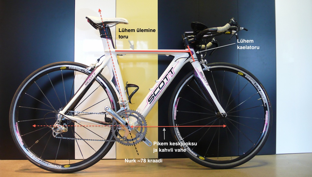 Lühem ülemine toru, aga arvestab aerolenksuga, et see ei venitaks keha liiga pikaks. Ka arvestab lenksuga kaelatoru, mis on maanteerattaga võrreldes lühem, et lubada võimalikult madalat sõiduasendit.