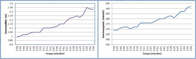 Aga jooniselt võime välja lugeda, et sörgilt üle minnes kiiremale tempole tõuseb alguses vertikaalne liikumine ja kiiruse suurenedes see jällegi väheneb. Esimest poolt muidugi tõendab ka see, et kõndides on antud näitaja madal, mis tippudel jääbki madalaks ehk iseenda kapsaaeda kivi visates võin ma öelda, et osa energiast, mis peaks mind kiiremini edasi viima, kulutan ma hoopis ülesliikumisele. Kindlasti teema, millele tähelepanu pöörata.