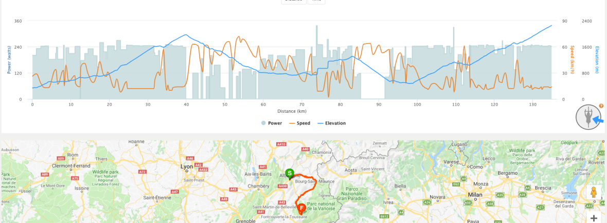 Tehnilised andmed: 135 km, 4563 tõusumeetrit, finiš 2365 m kõrgusel, 65 % ajast on tõusunurk 4 % või rohkem. Kogukestvus 6.5h pluss-miinus päris mitu tundi 🙂